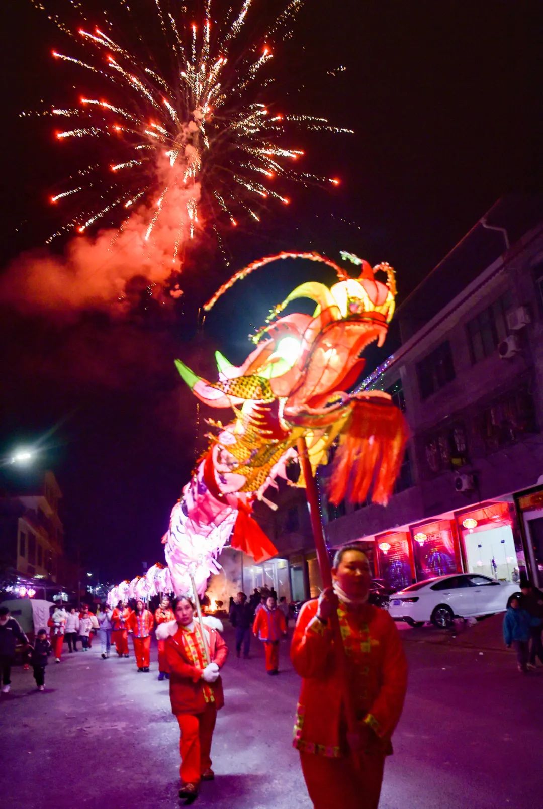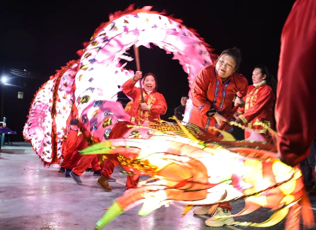 1月27日,我县寨英镇的村民按传统习俗舞滚龙欢度新春。