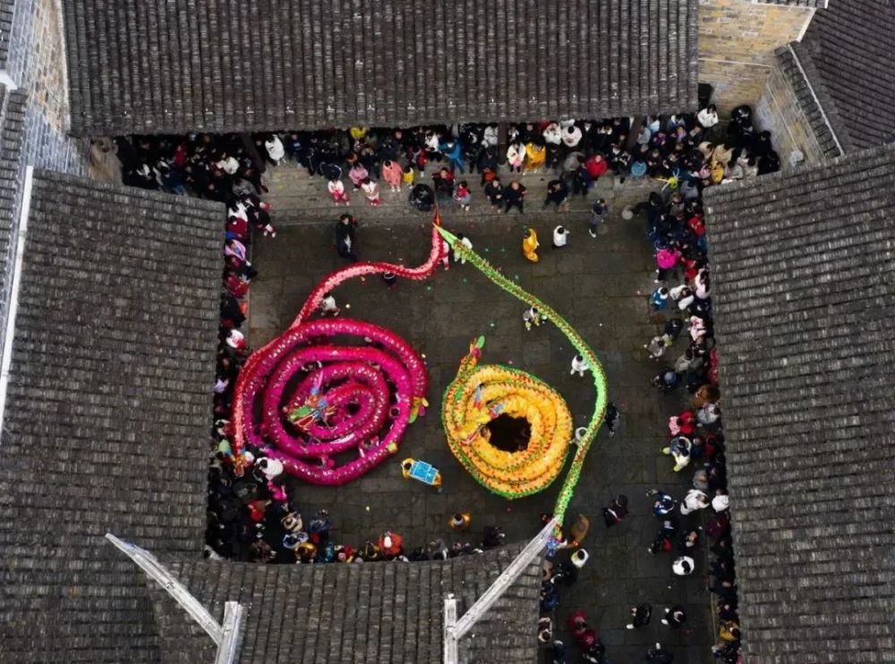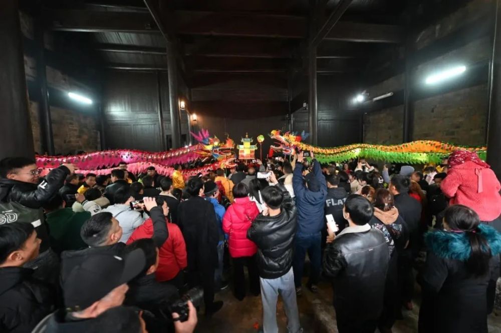 下午2点,在寨英古镇万寿宫安上灯堂,两条滚龙举行安灯请神仪式,祈求来年风调雨顺、国泰民安。随后,闲庭信步地游走在古镇巷道,“双龙戏珠”“滚龙闹春”等各种造型在滚龙队员们手中演绎地活灵活现,现场的群众和摄影爱好者们不停按下快门,记录着这精彩、欢快的场景。