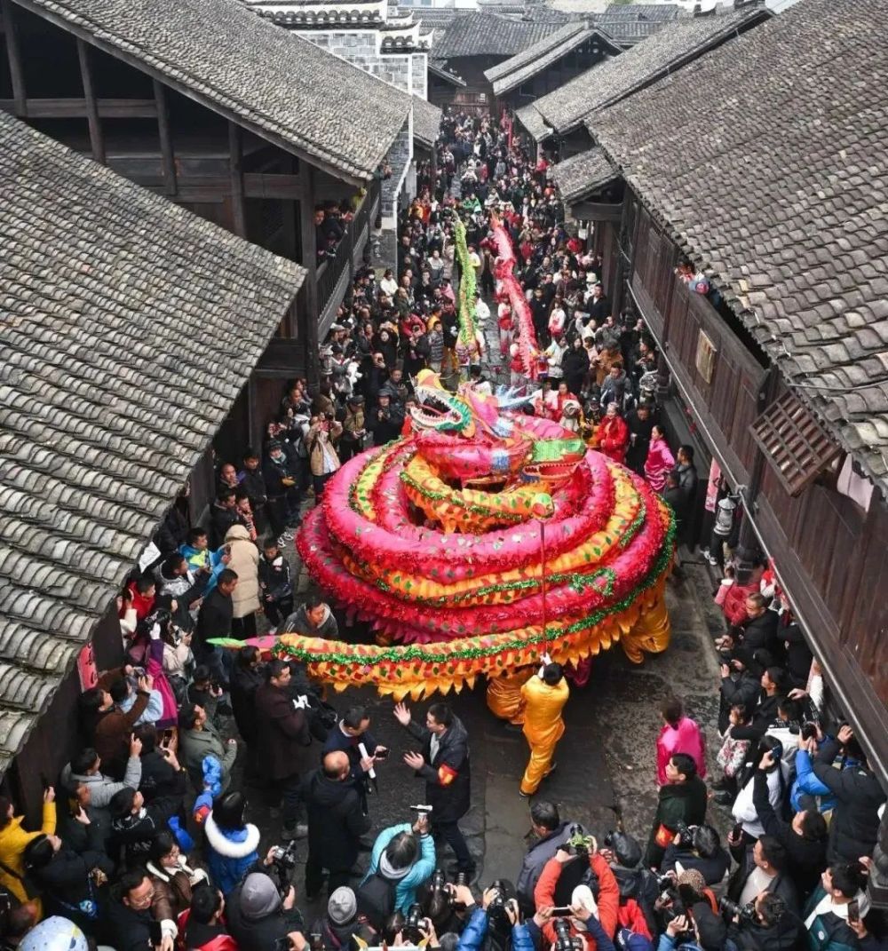 2月3日,农历正月十三,铜仁松桃苗族自治县举办第十三届中国寨英滚龙文化艺术节,当天,28条造型不同的滚龙齐聚寨英古镇,吸引了来自全国各地的数万名群众及摄影爱好者前来观看。